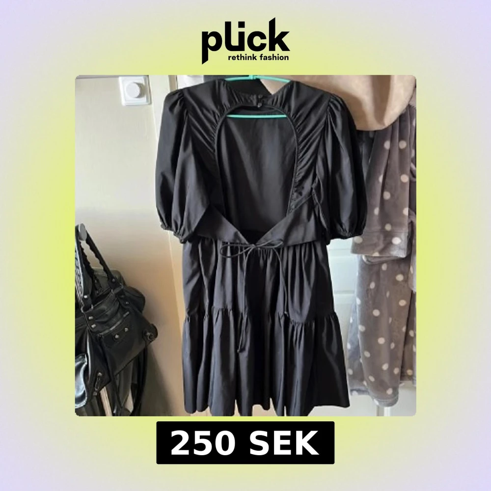 Snygg svart klänning från Zara med puffärmar och volanger. Klänningen har en öppen rygg med knytband i midjan och rund halsringning. Tillverkad i mjukt bomullsmaterial och har en loose passform som ger en chill vibe. Perfekt för dig som gillar statement-plagg.