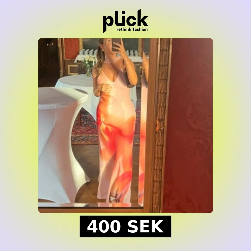 Säljer en maxiklänning med omlottkänsla och v-ringad hals. Klänningen har tunna axelband och ett flytande mönster i rosa, rött och orange toner. Materialet är lätt och svalt, perfekt för sommarens tillfällen. Snygg passform som följer kroppen och ger en elegant siluett. ANVÄND EN GÅNG