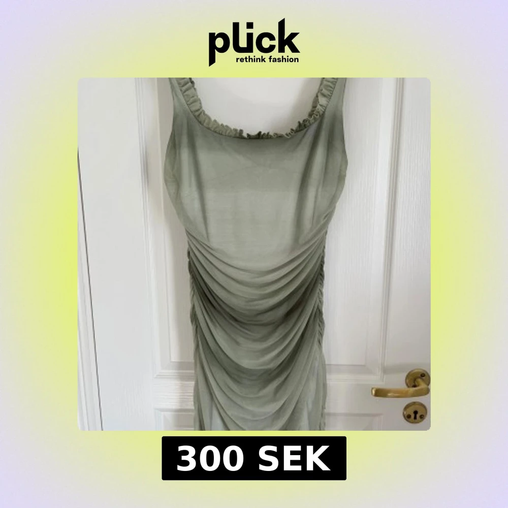 Säljer en super fin grön klänning från Zara. Klänningen har en sjuk passform då de är scrunch på sidorna och baktill. Storlek L men liten i storlek så passar S/M🩷