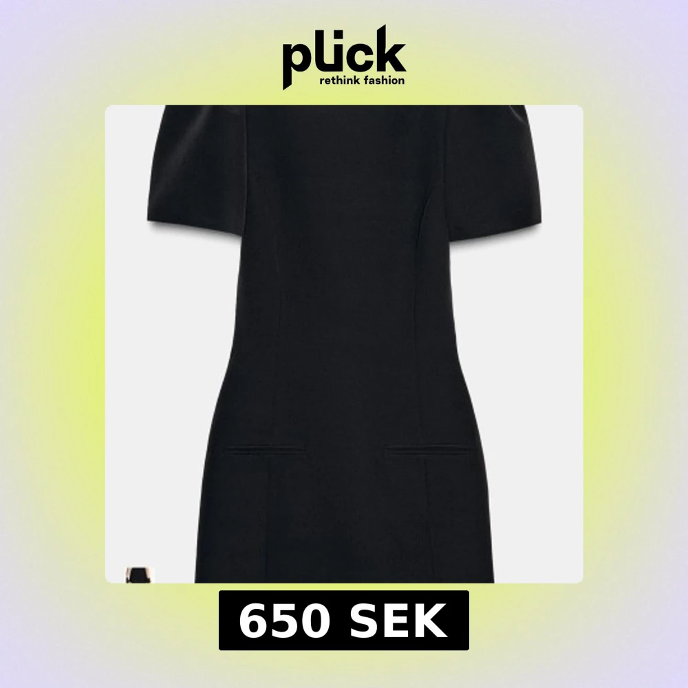 Stilren svart kort klänning från Zara med markerade axlar och korta ärmar. Klänningen har en figurnära passform och diskreta fickdetaljer framtill. Perfekt för dig som gillar minimalistisk och elegant stil.
