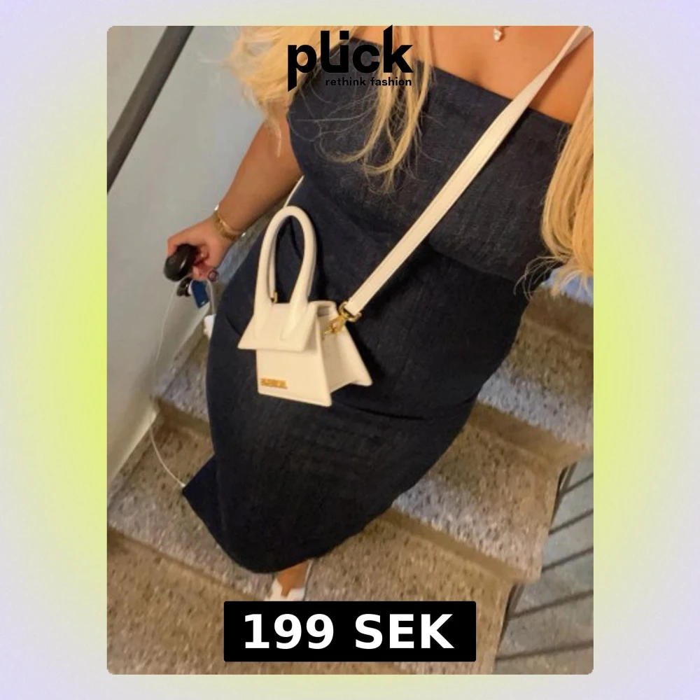 Säljer en stilren marinblå axelbandslös långklänning från Zara. Klänningen har en figurnära passform och är gjord i jeansmaterial som ger en cool och modern vibe. Perfekt för dig som gillar minimalistisk och trendig stil.