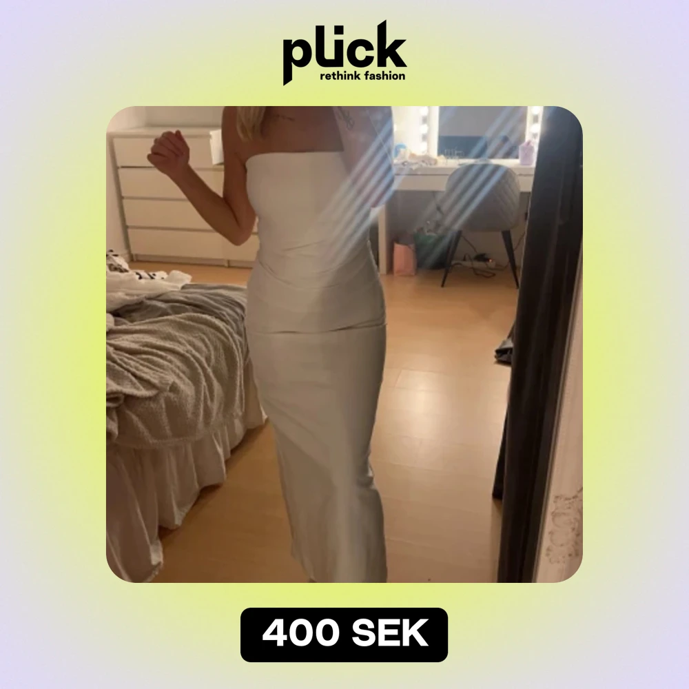 En sååå fin strapless zara klänning med en slits som tyvärr knappt kommer till användning. Använd en gång och utan defekter💕priser går att diskuterasss💘