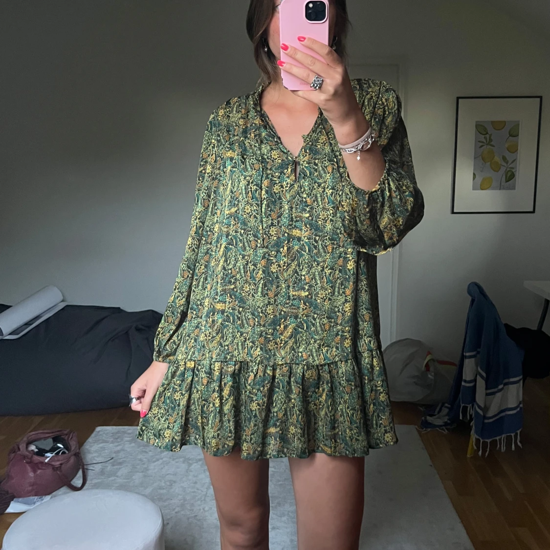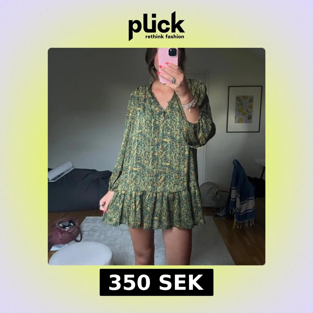 Grön blommig kortklänning med volang