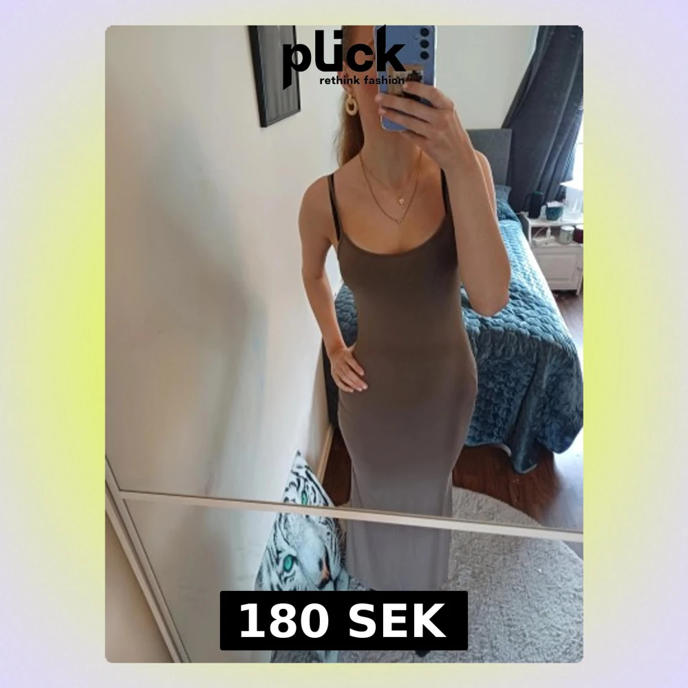 Jag säljer en hjäte fin och stilren brun långklänning med smala axelband och figurnära passform. Perfekt för dig som gilla långklänning och stil och vill ha något som känns både bekvämt och snyggt. Skriv om ni har några frågor ❤️