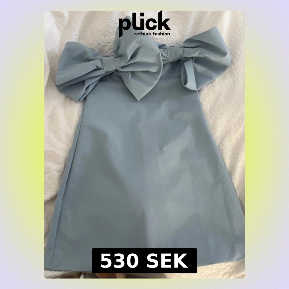 Supersöt ljusblå axelbandslös klänning med två stora rosetter framtill. Klänningen har en rak, kort siluett och är perfekt för dig som vill sticka ut. Materialet känns slätt och lätt, vilket ger en fräsch känsla.