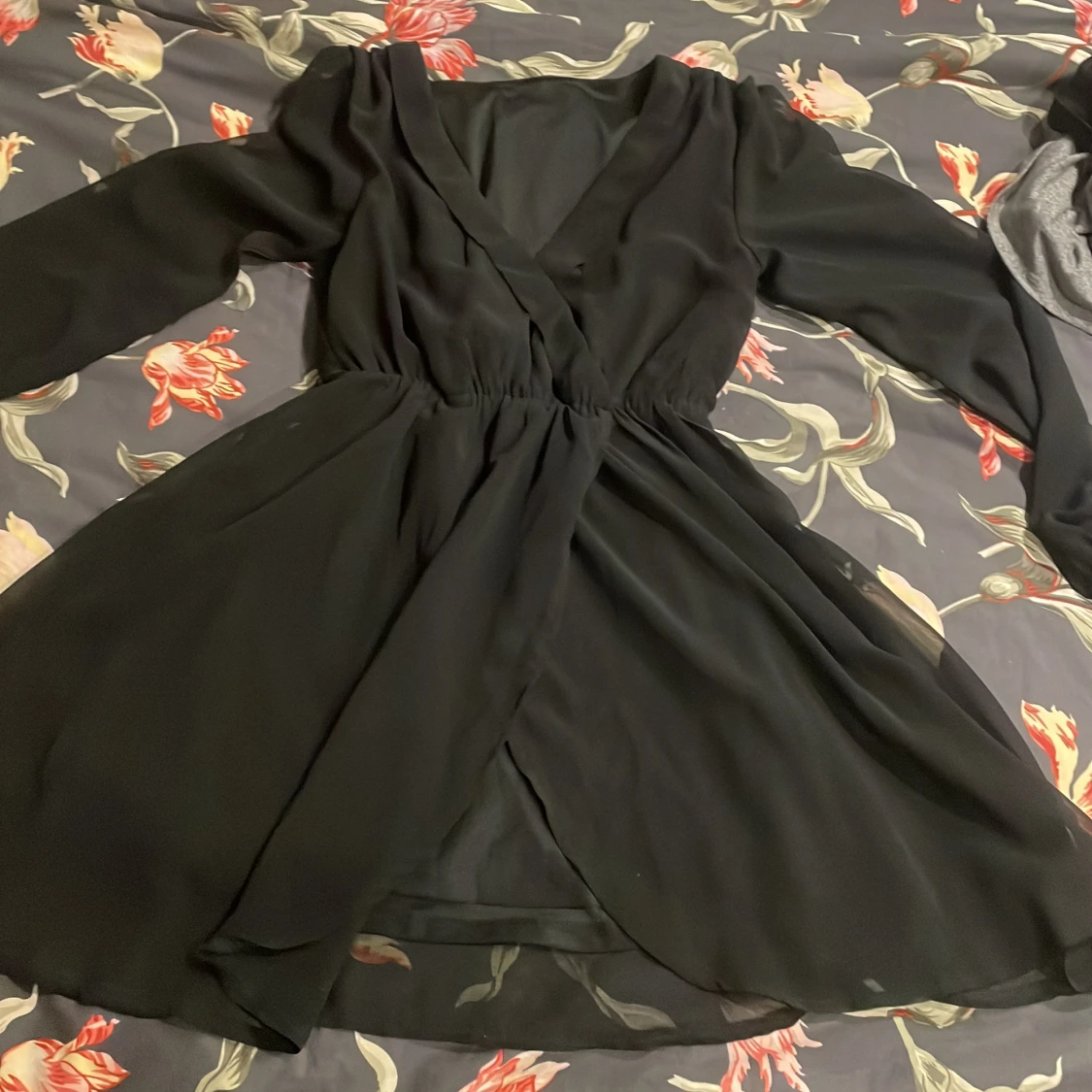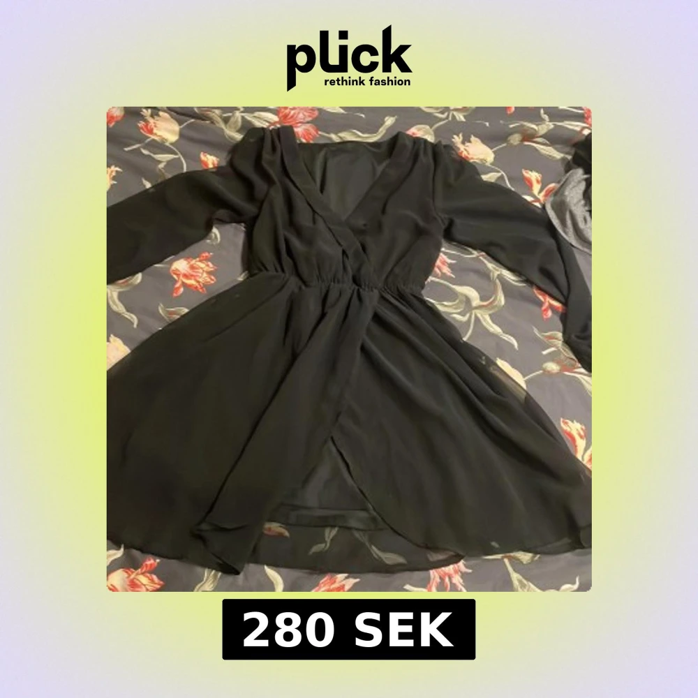 Snygg svart kortklänning perfekt för nyår och med omlott-design och v-ringad hals. Klänningen har långa ärmar och ett lätt, flödande tyg som ger en elegant siluett. Perfekt för dig som gillar stilrena och trendiga plagg med lite extra attityd.