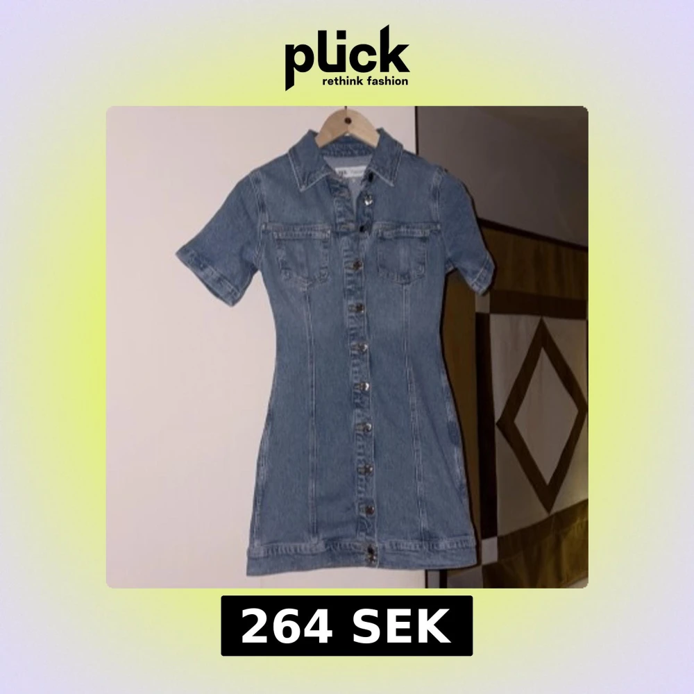 Snygg jeansklänning från Zara i klassisk blå denim. Kortärmad modell med krage, två bröstfickor och knappar hela vägen framtill. Figurnära passform som ger en cool och trendig look. Perfekt till sneakers eller boots. Aldrig använd endast testad. Säljer då den är väldigt kort på mig. Hör av er vid intresse eller frågor köpt för 400 kr