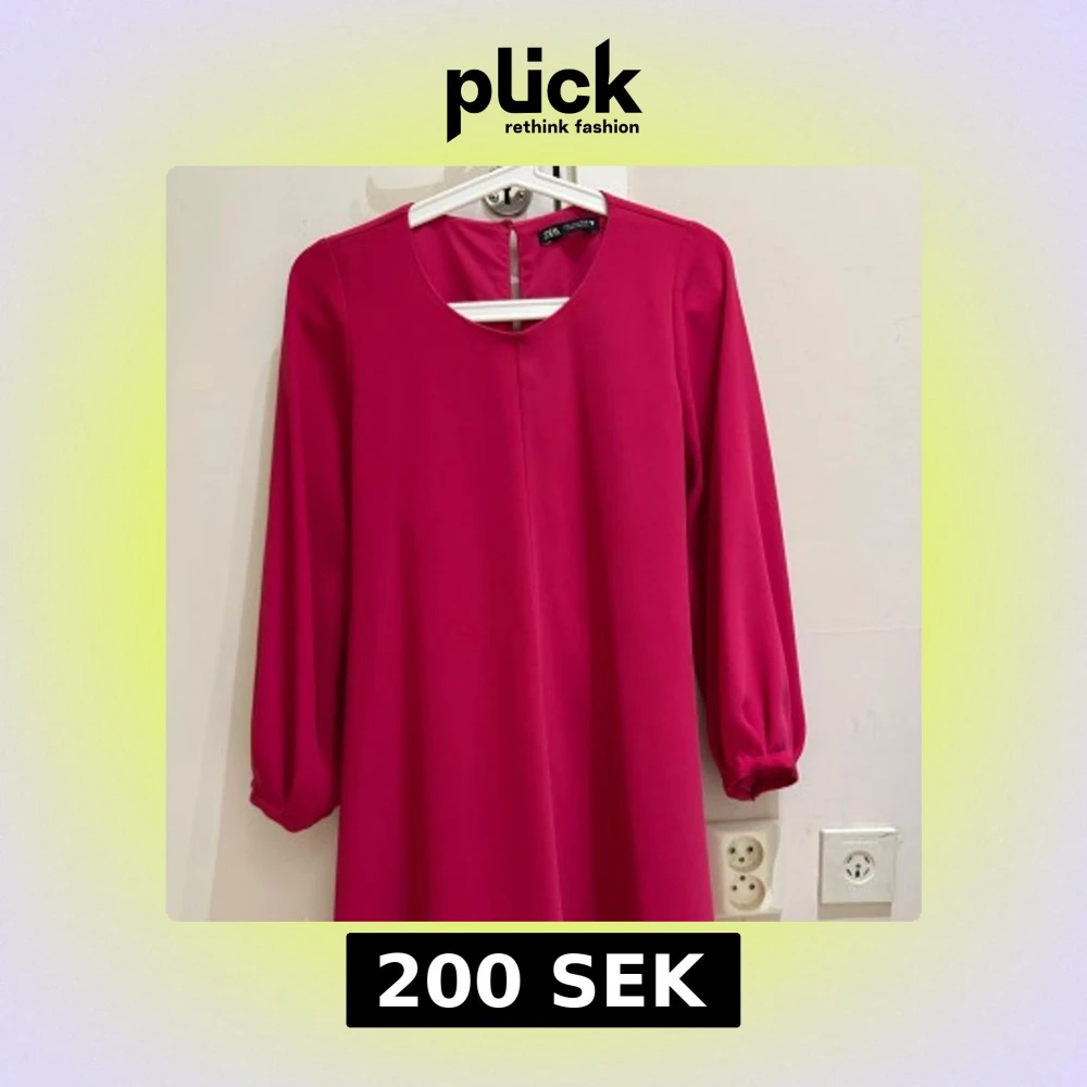 Superfin ceriserosa klänning från Zara med rund halsringning och långa ärmar. Klänningen har ett knytband i midjan och stängs med knapp i nacken. Den är lätt utställd och slutar ovanför knäna, perfekt för dig som gillar färg och enkel stil.