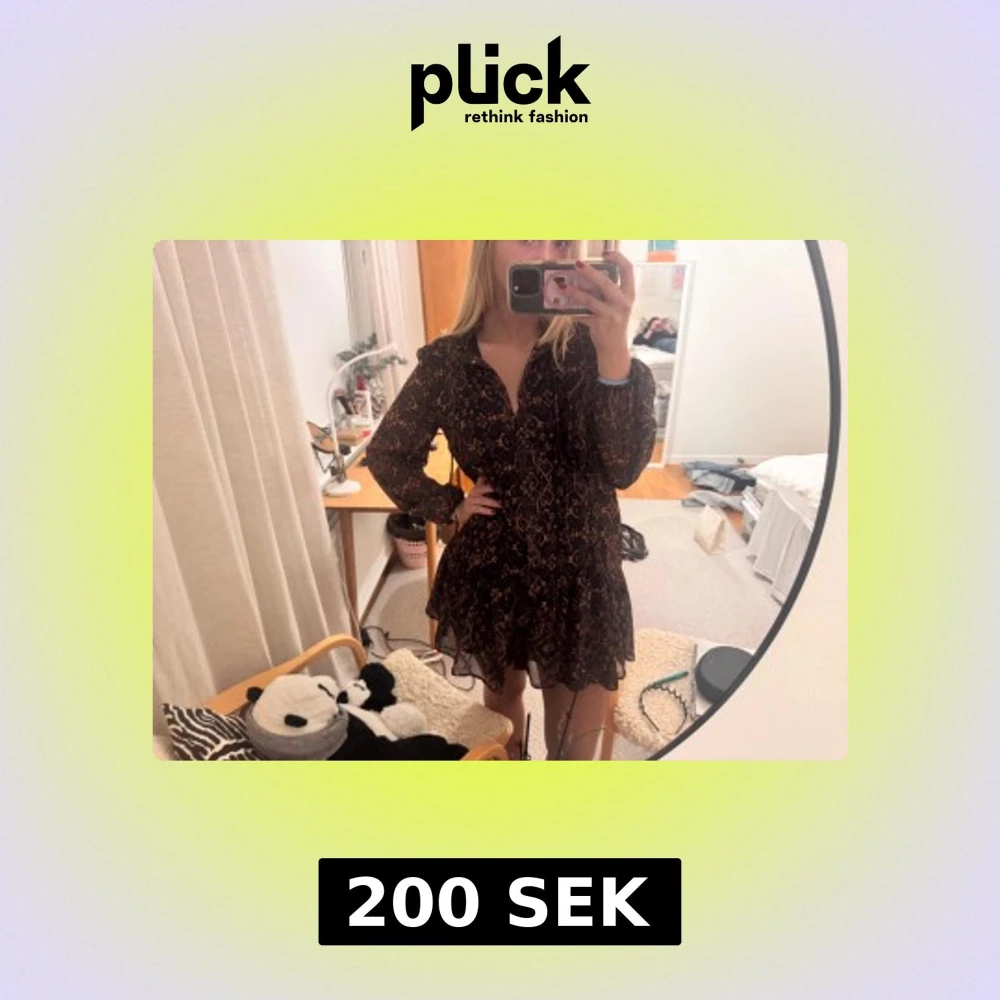Mörk mönstrad kortklänning med volang