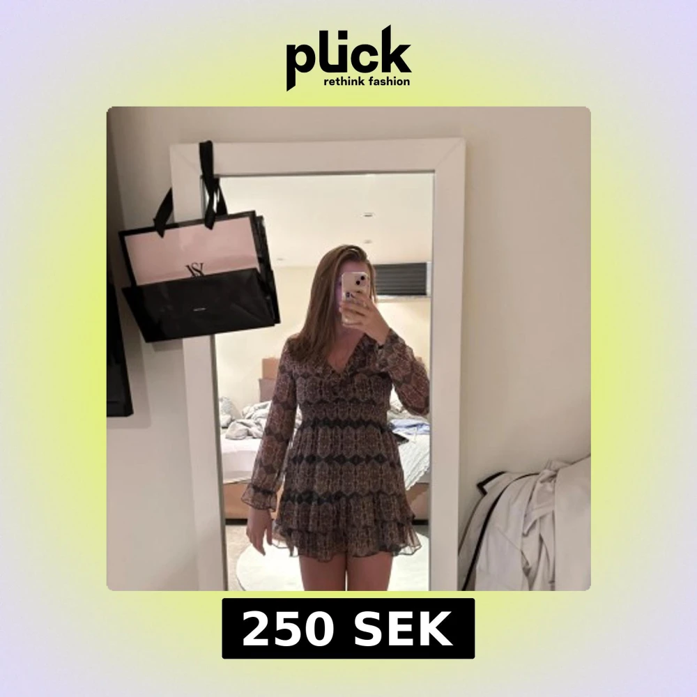 Supersöt kortklänning från Zara med mönster i flera färger. Klänningen har v-ringning, långa ärmar och volangdetaljer nertill. Efterlängtad och säljs inte längre, köpte för runt 400kr❤️