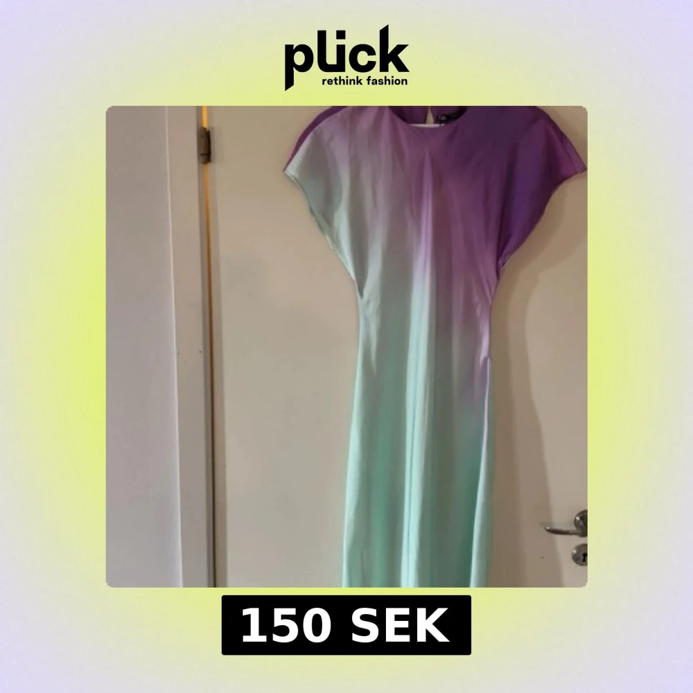 Supersnygg långklänning från zara med mjuk övergång från lila upptill till mintgrönt nedtill. Klänningen har korta ärmar och ett flowigt, rakt fall. Perfekt för dig som gillar färg och vill sticka ut med en unik gradient-effekt. Nypris 549