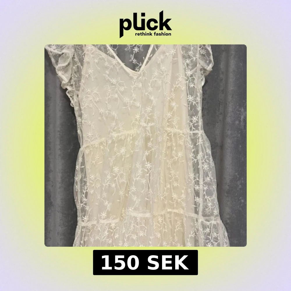 Superfin vit klänning från Zara i spets med blommigt mönster. Klänningen har volangdetaljer och är ärmlös med v-ringning. Perfekt för sommarens tillfällen och ger en romantisk look.