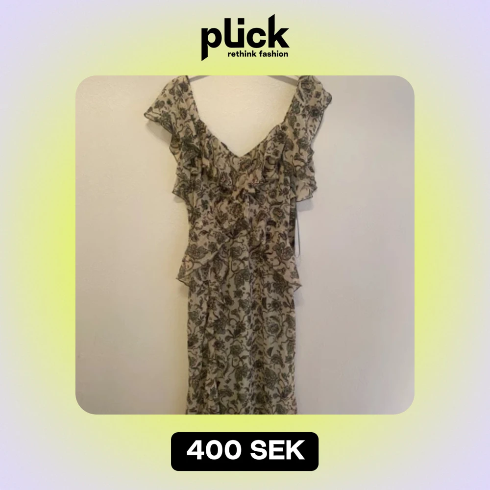 Grön blomstrig långklänning, med glitter tråd. Köpte på Zara och aldrig andvänd. Är cirka 175 och slutar mitt på smalbenet.