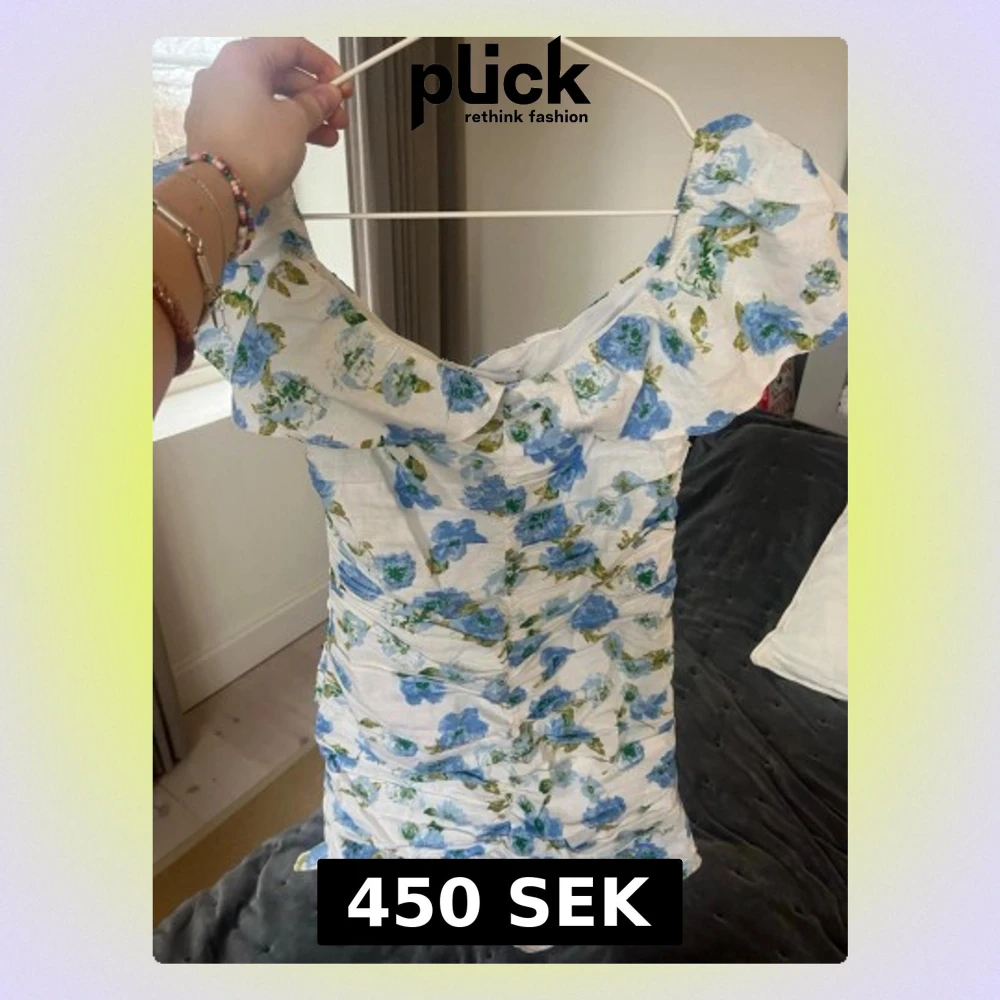 Superfin kortklänning från Zara med blåa och gröna blommor på vit botten. Klänningen har volang vid axlarna och är figurnära med rynkade detaljer längs hela klänningen. Perfekt för sommarens alla tillfällen, och materialet känns lätt och luftigt.