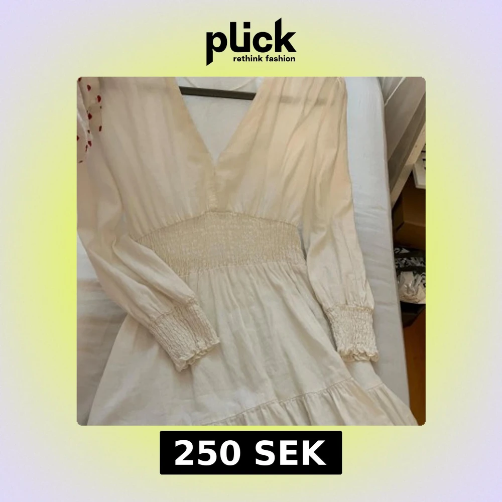 Superfin vit klänning från Zara i linneblandning med v-ringning, långa ärmar och smock i midjan😍