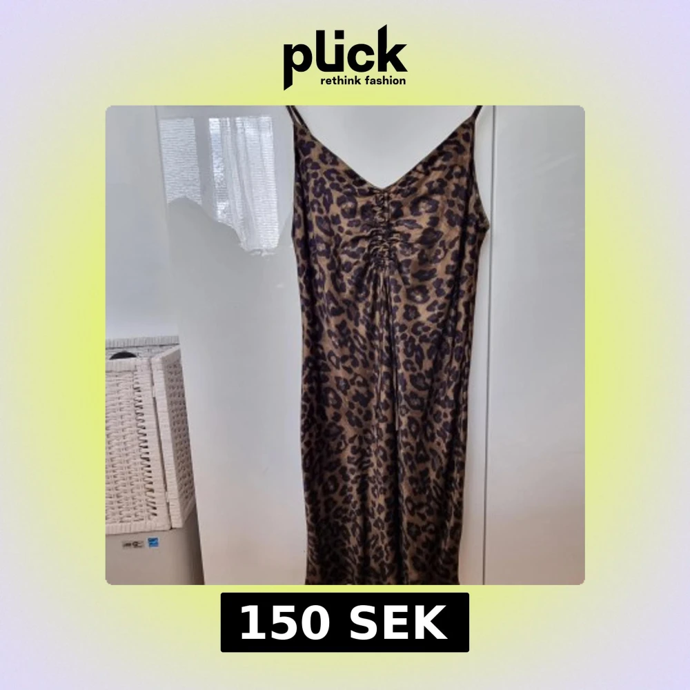 Säljer en snygg långklänning från Zara med leopardmönster. Klänningen har smala axelband, v-ringning och rynkade detaljer framtill. Materialet är mjukt och följsamt, perfekt för dig som vill sticka ut.