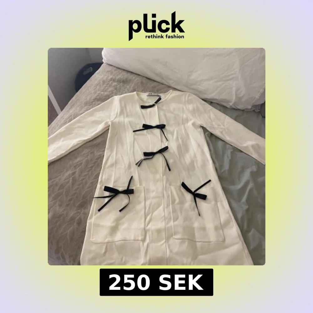 Supersöt vit långärmad klänning från Zara med svarta rosetter framtill och två stora fickor. Klänningen har en rak passform och är tillverkad i ett mjukt material som känns skönt mot huden. Perfekt för dig som gillar en stilren look med en twist.Den är aldrig använd och säljer för den inte kom till användning