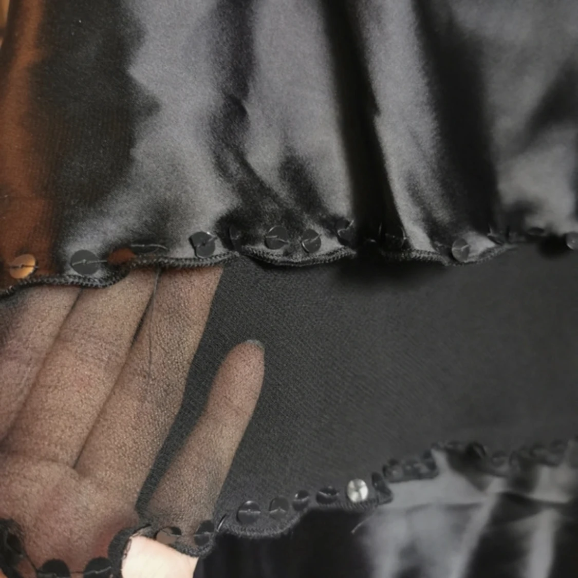 klänning med paljetter, storlek L men liten i storleken