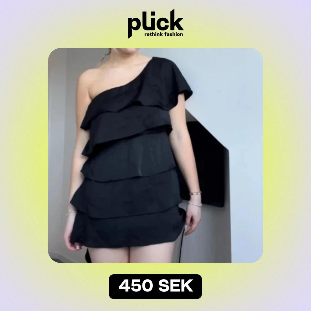 Säljer denna klänning igen då det blev fel i förra annonsen!! Superfin volangklänning med en axel. Fint skick ❤️ tryck på köp nu för köpa