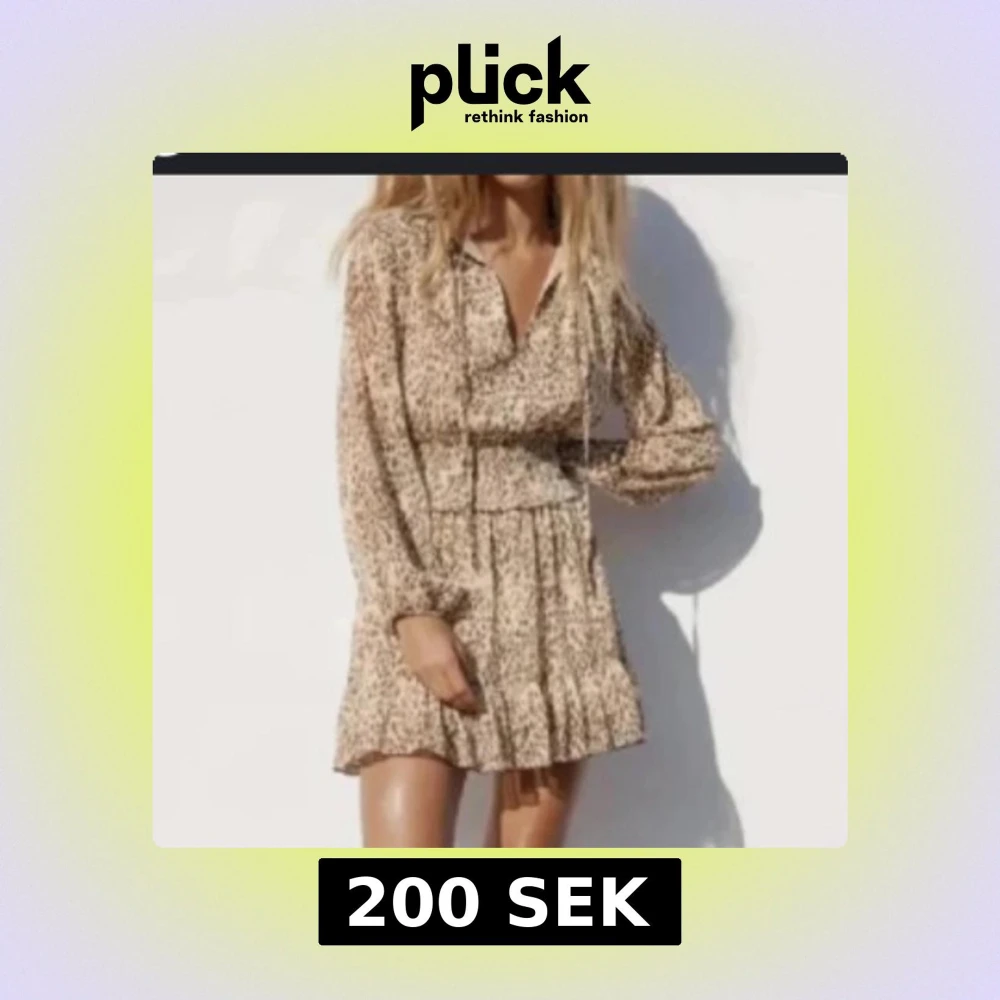 Supersöt kortklänning i beige med leopardmönster och v-ringning. Klänningen har långa ärmar, volang nertill