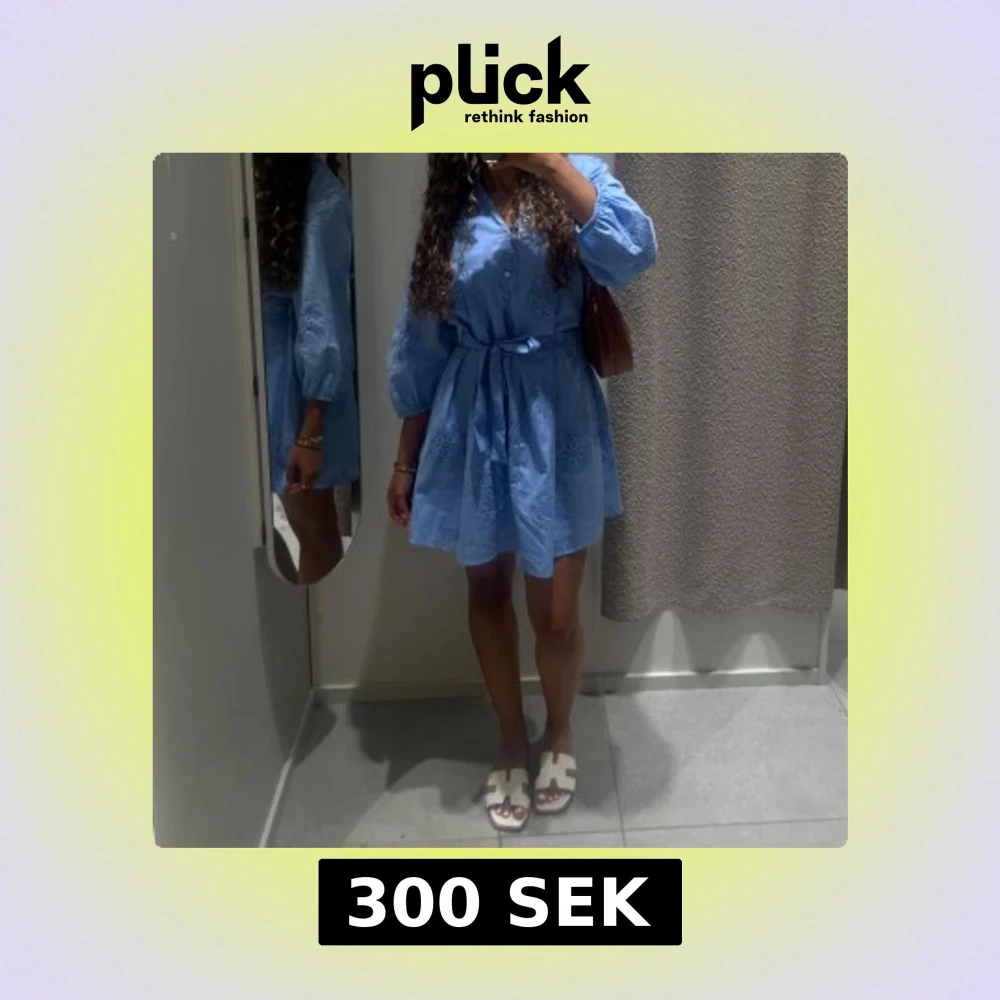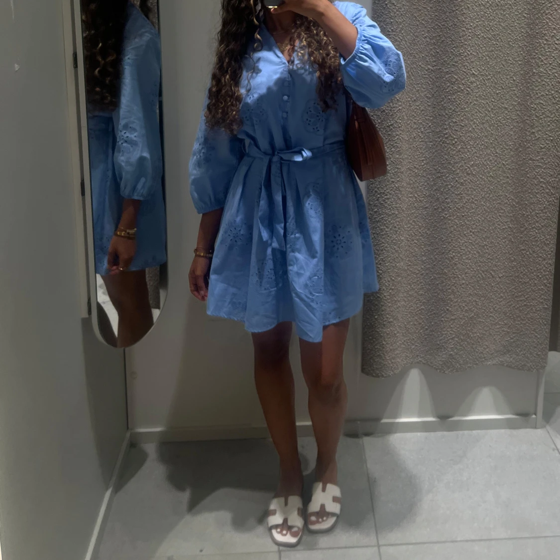 Söt blå kortklänning. Klänningen har trekvartsärmar och broderade detaljer. (Lånad bild) 🤗