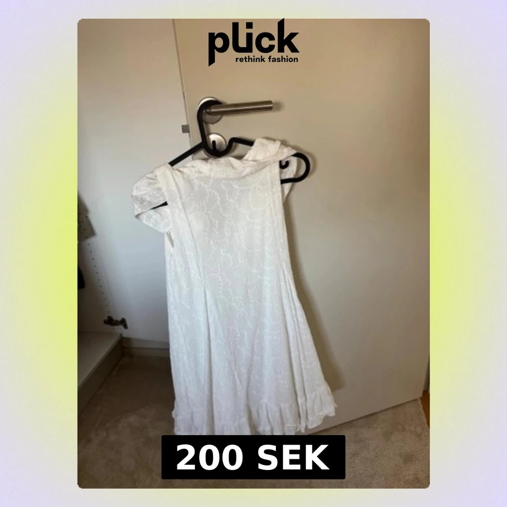 Söt vit omlottklänning från Zara med volangdetaljer längs kanterna och vid ärmarna. Klänningen har ett diskret mönster i tyget och är ärmlös med en luftig, kort passform. Perfekt för varma dagar och somriga tillfällen.