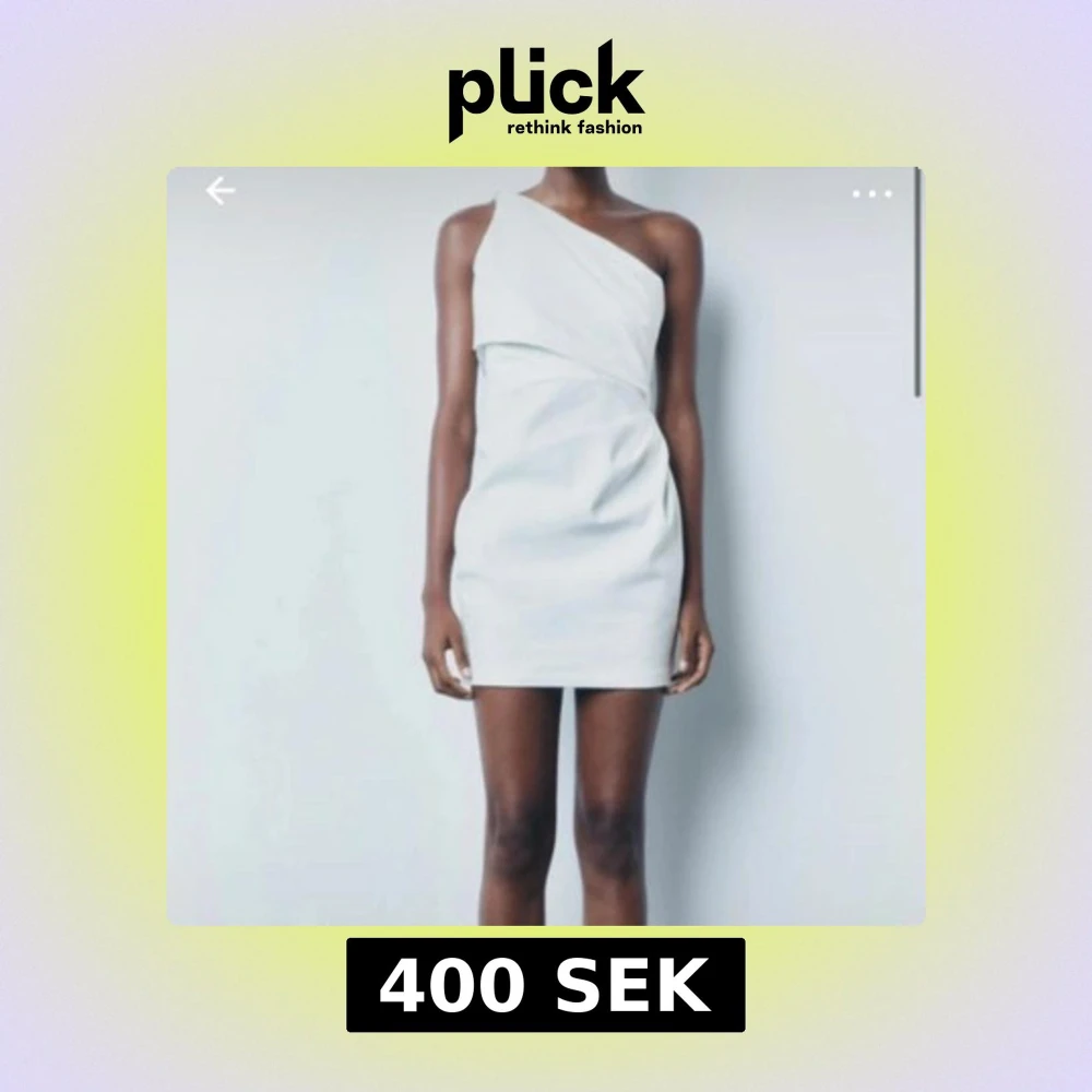 Snygg vit one-shoulder klänning från Zara. Perfekt för en stilren look med sin enkla design och korta längd. Klänningen har en elegant drapering över axeln som ger en unik touch. Prislapp kvar och nypris 550kr❤️