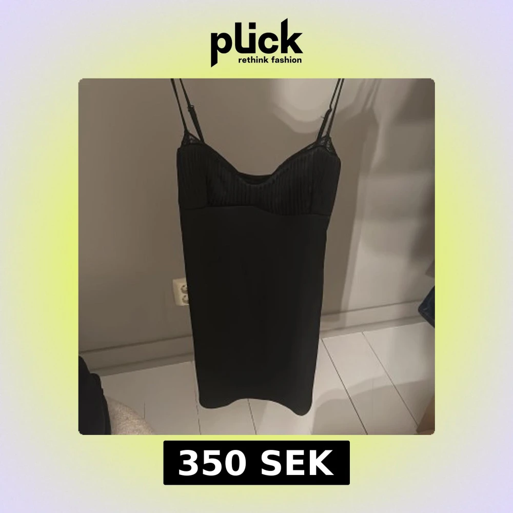 Stilren svart kort klänning med tunna justerbara axelband och lätt ribbad överdel. Den är i satin och är från zara, köptes förra hösten och inte används då den är för liten på mig. 🤎orginalpris 600