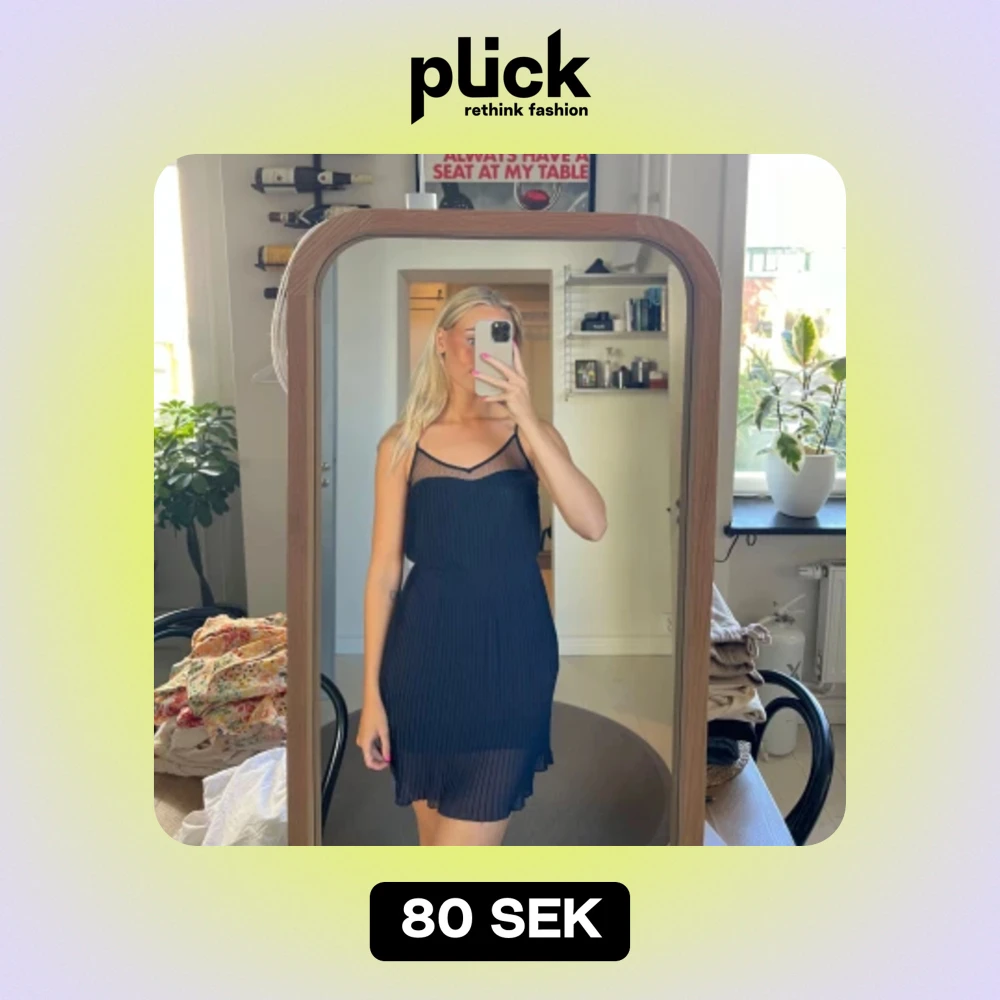 Säljer en superfin mörkblå klänning med tunna axelband och spetsdetaljer vid halsen. Klänningen har en plisserad design som ger en elegant look. Perfekt för fest eller en sommarkväll! 💙