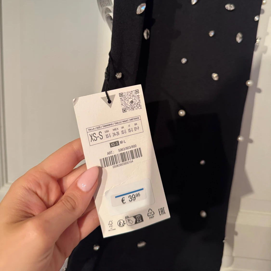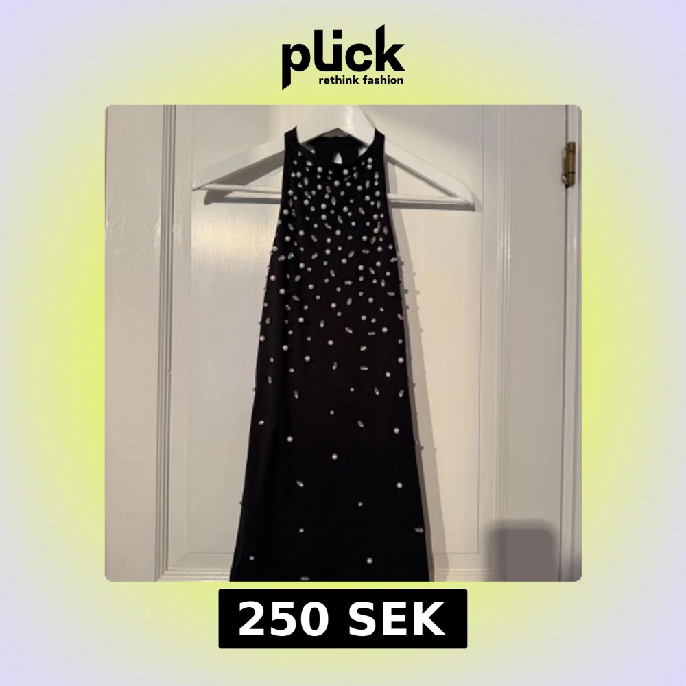 Supersnygg svart kortklänning från Zara med glittriga stenar och pärlor över hela framsidan. Klänningen har hög hals och är ärmlös, vilket ger en cool och elegant vibe. Perfekt för dig som vill sticka ut med lite extra bling.