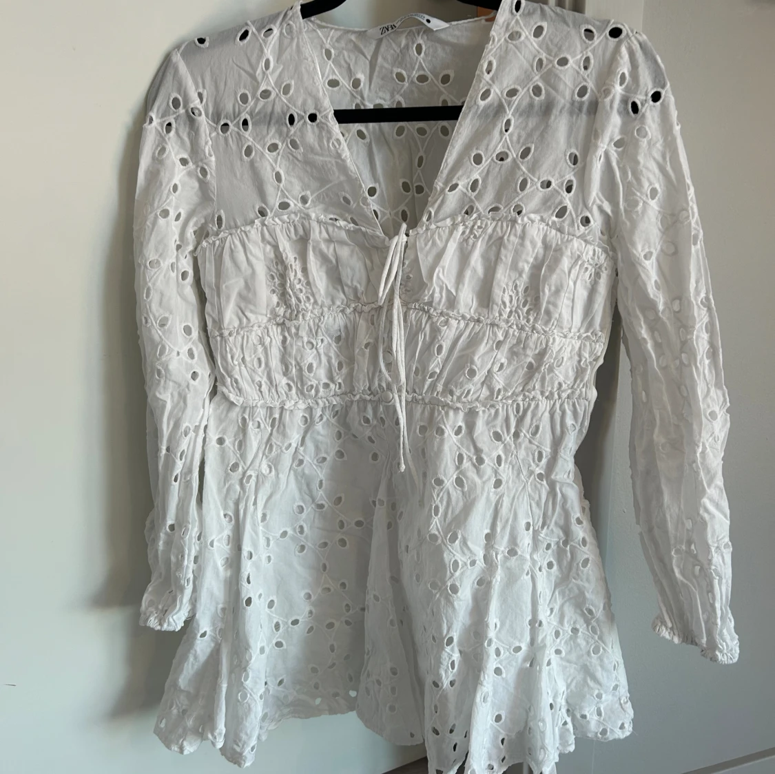 Otroligt söt vit sommarklänning från zara. Storlek M men passar snarare en S enligt mig 🩷 fint skick utan anmärkningar!