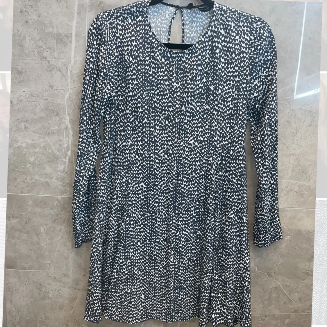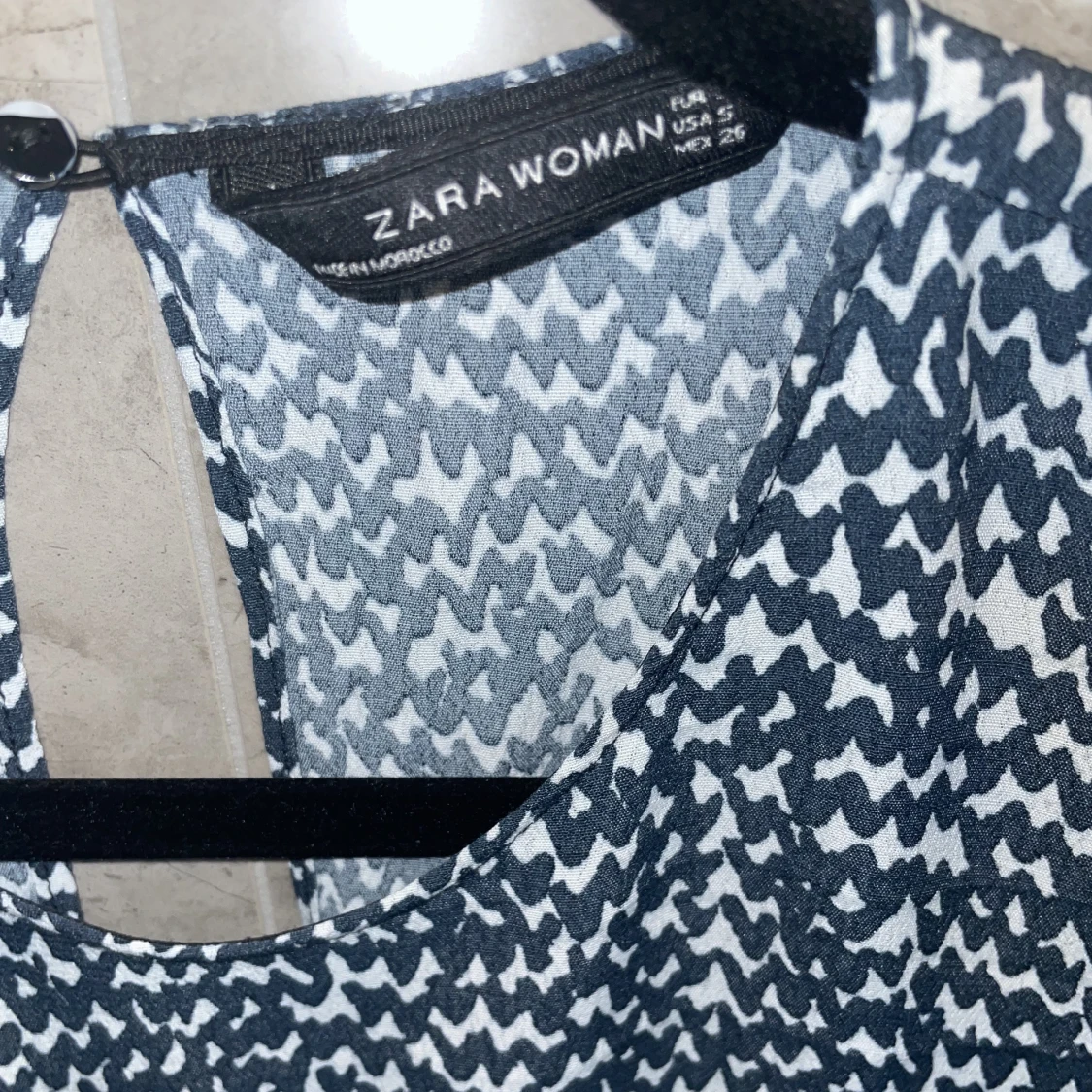 Fin blå-/vitmönstrad klänning från Zara. Storlek Xs/S. Klänningen är i bra skick. Säljer den då den är för kort på mig.