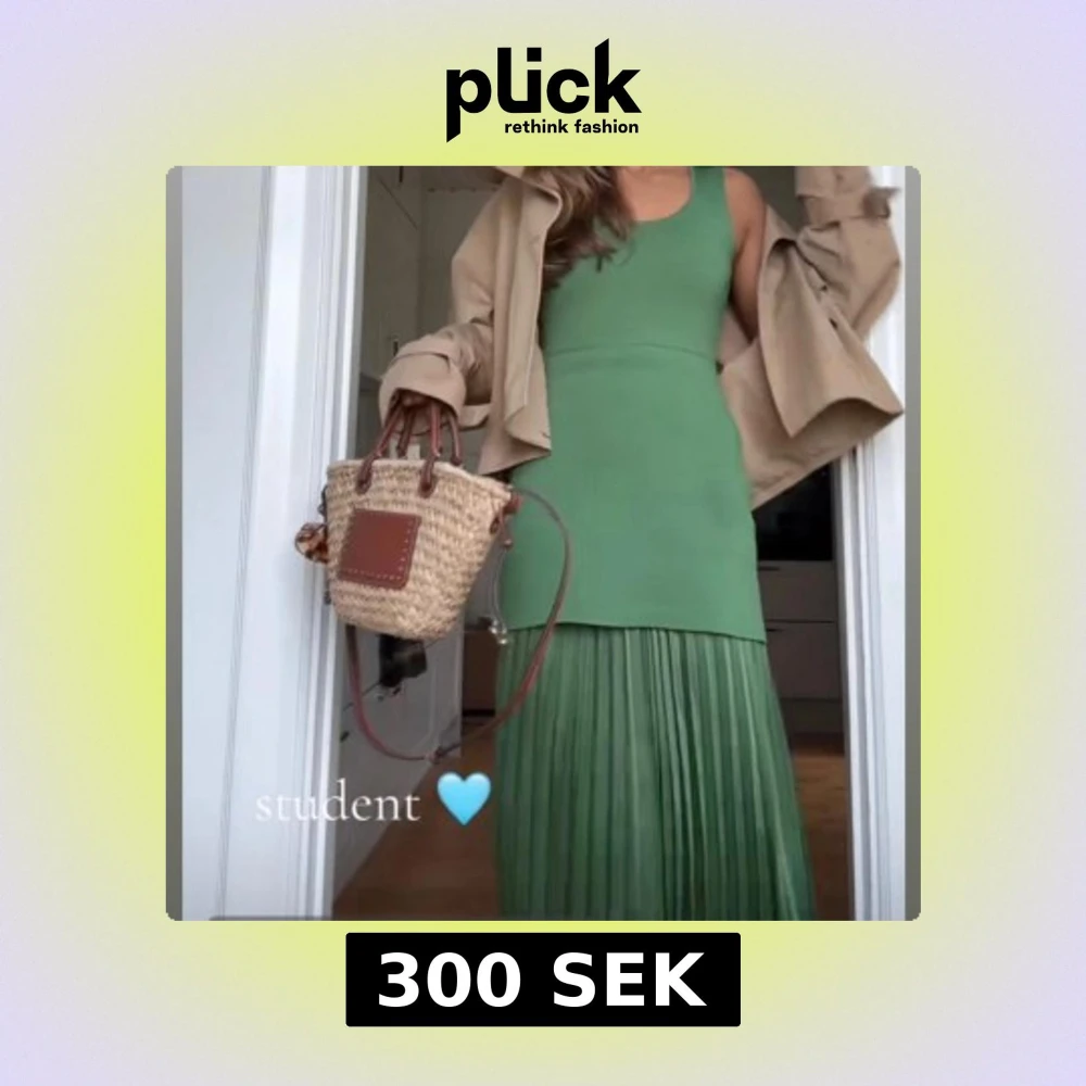 Säljer en snygg grön långklänning med ärmlös överdel och plisserad kjol. Från Zara