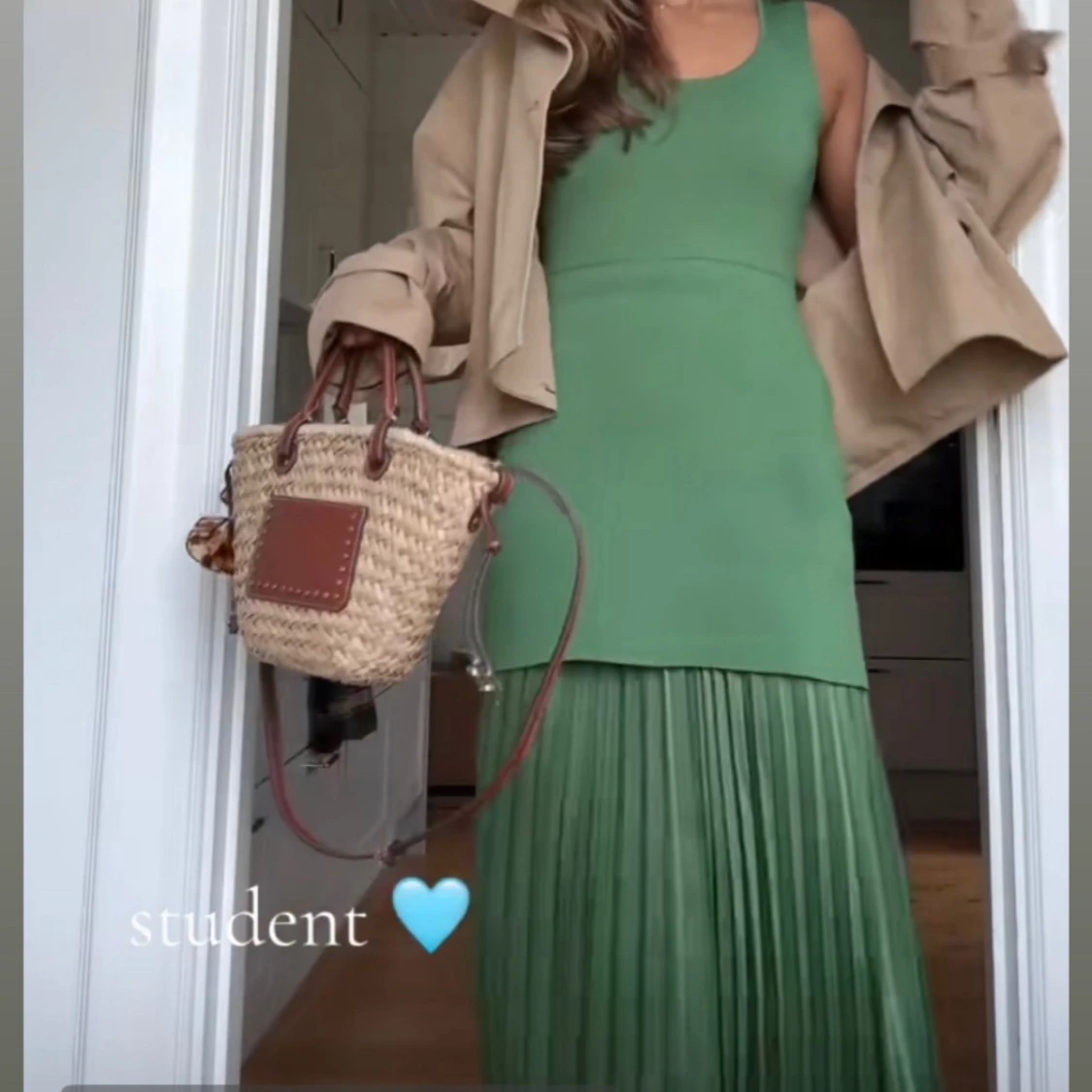 Grön långklänning med plisserad kjol