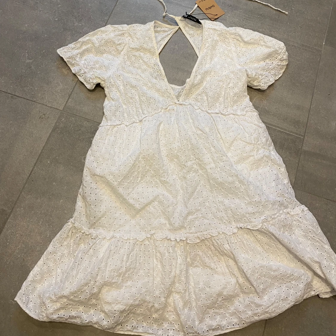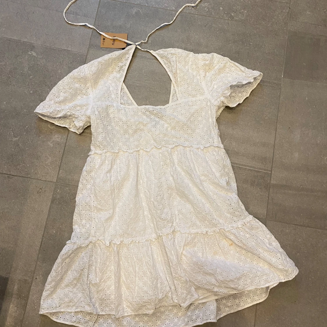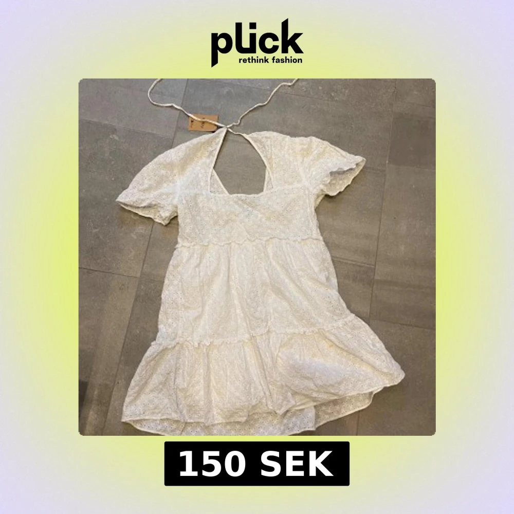 •inköpt på sellpy av mig men säljs vidare billigt då den inte passade! •känns helt ny enligt mig!! Perfekt till studenten •storlek M -mått på längd på sista bilden -mini dress med två lager tyg •jätte söt detalj i ryggen som är halvt öppen med knyte längst upp •använd gärna köp nu eller bundel (Säljer en svart klänning som passar perfekt till möss på tagningen också)
