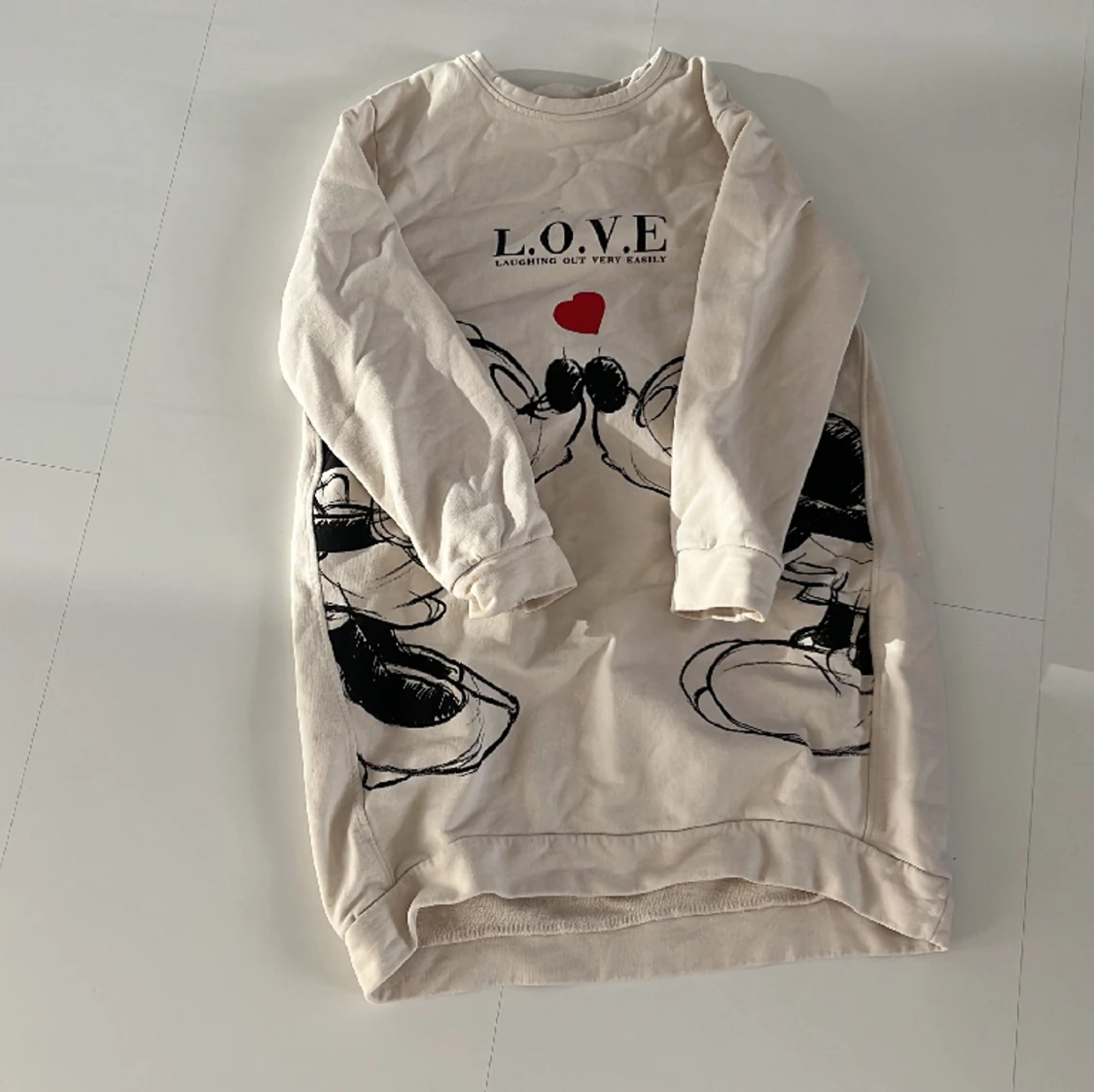 Denna är slutsåld överallt och väldigt gullig! Den passar mindre storlekar! Modellen är jord att ha lite kortaste armar så om ett barn med mindre storlek skulle andvända skulle armarna vara perfekt! Jag själv har älskat denna klänning! Du står för frakt!