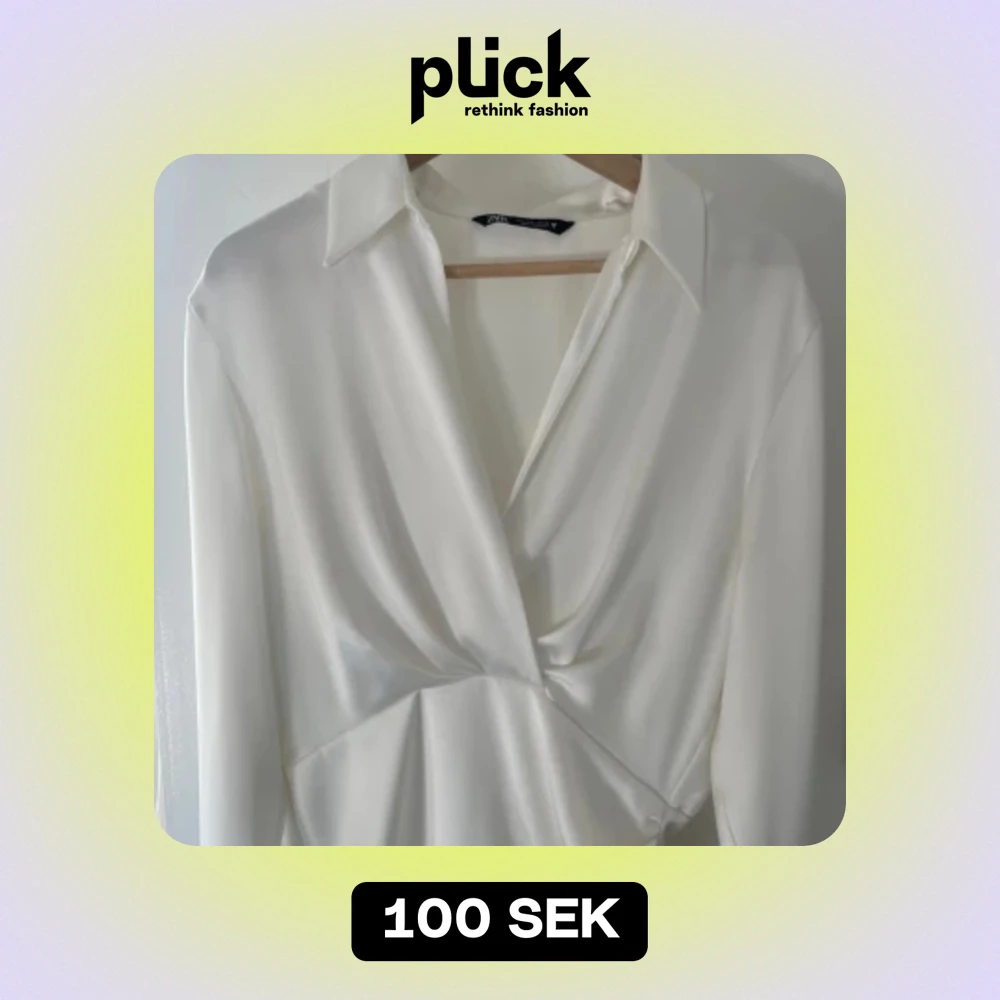 En satin klänning från Zara i storlek M och har fläckar som syns på bilderna där av priset☺️