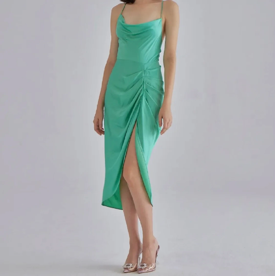 Helt ny satinklänning som ej kommit till användning. Köpt för 150$ + tull osv från Silkmaison Väldigt bra kvalite!! Pris kan diskuteras