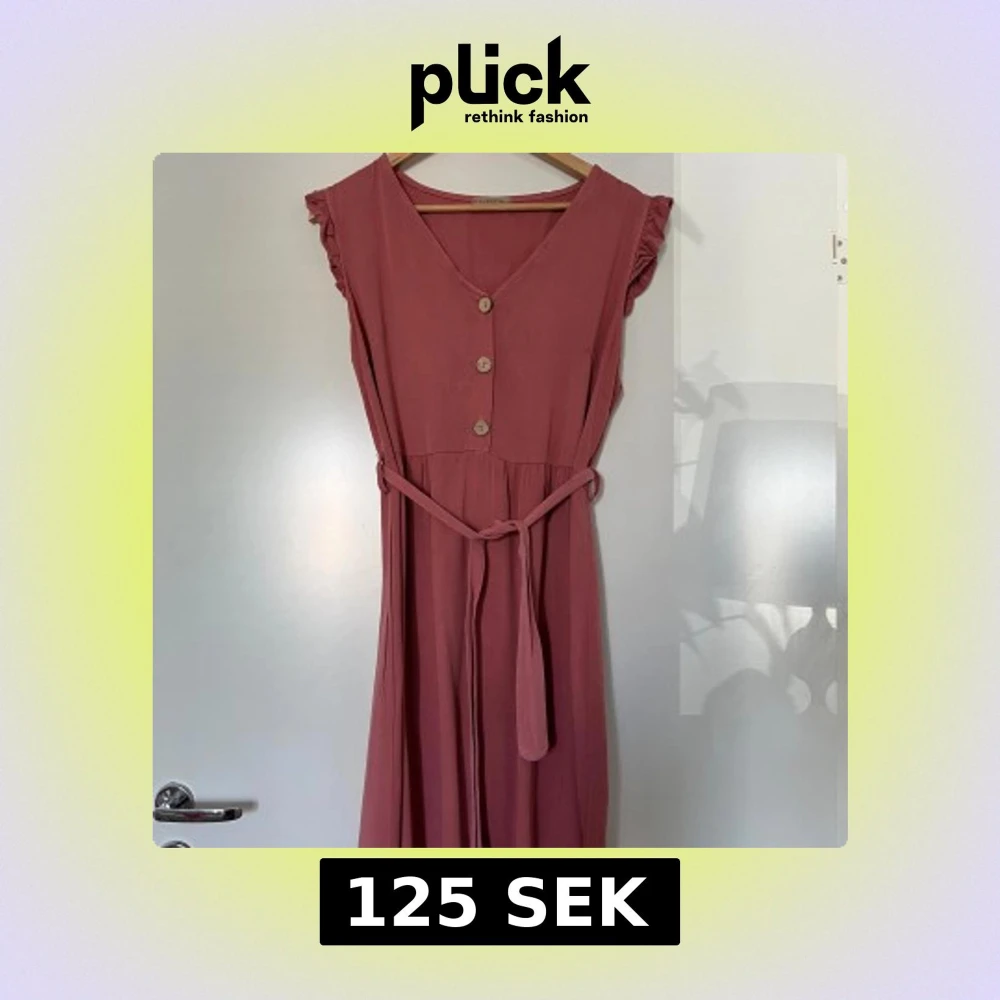 Rosa klänning från Zauberstern i storlek M, med v-ringning och dekorativa knappar framtill. Klänningen har korta, volangprydda ärmar och ett avtagbart band i midjan för att framhäva figuren. Perfekt för en somrig och avslappnad look. Nyskick. 100% viskos. Mått: Längd ca 105 cm Byst ca 53 cm Midja ca 52 cm Axel till axel ca 42 cm