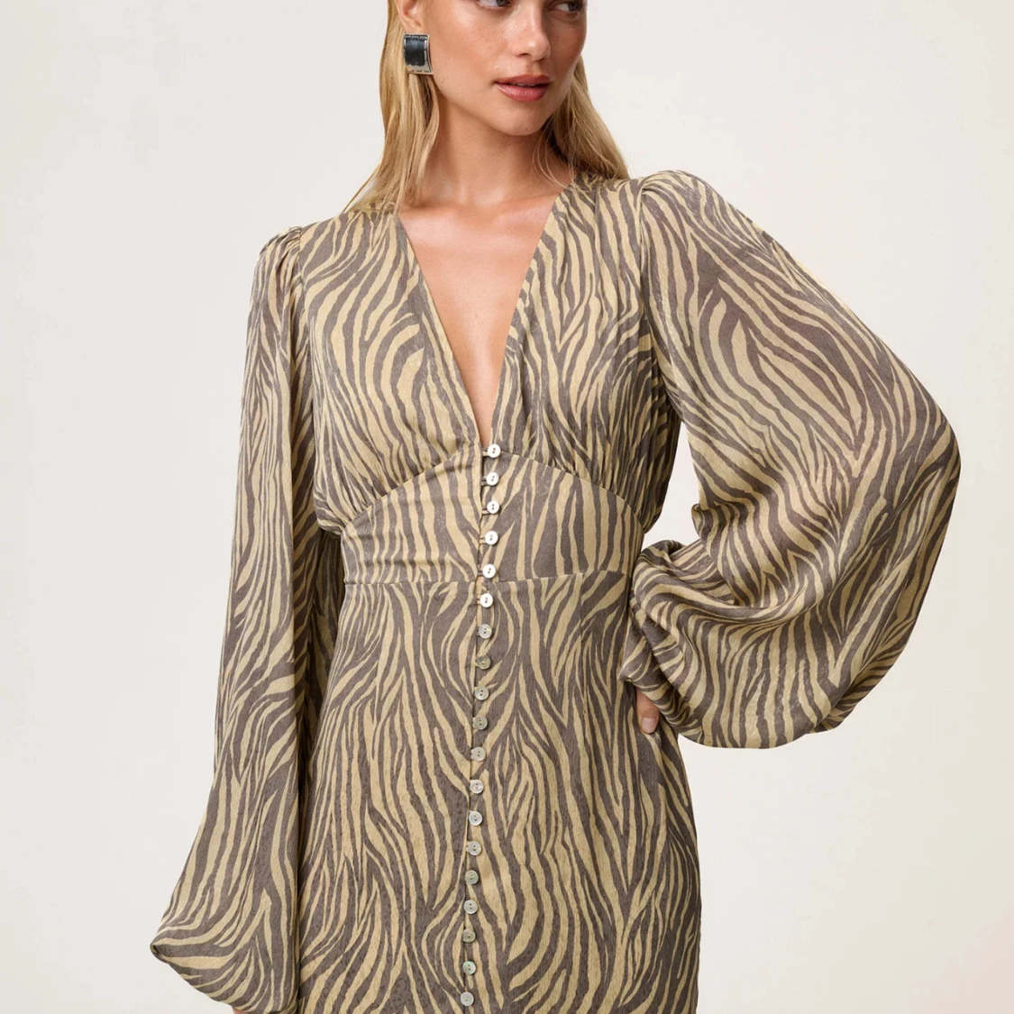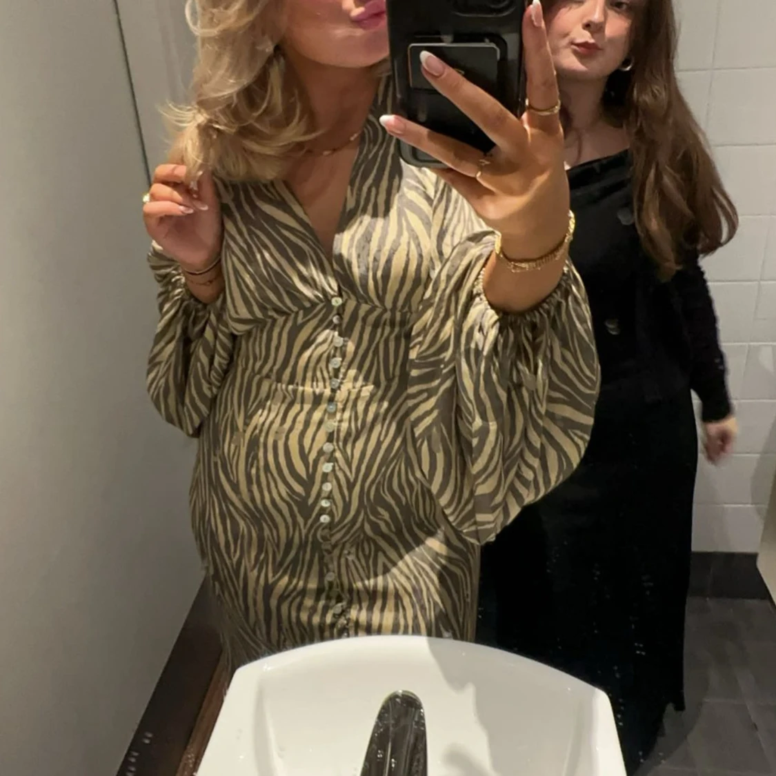 Säljer min klänning från Adoore för jag tröttnat på mönstret, använd 1 gång, har storlek s/m på alla kläder (förutom byxor som är m/l) som referens. Klänningen är i storlek 42 men passar super på mig!