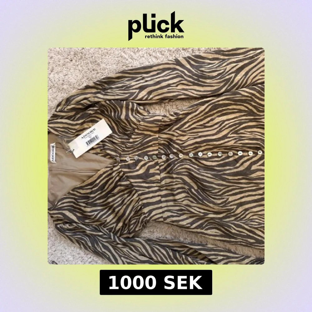 Korta modellen klänning från Adoore med zebramönster i beige och brunt. Klänningen har v-ringning, långa puffärmar och knappar framtill. Endast använd en dag och i fint skick. Nypris hos adoore är 1495kr
