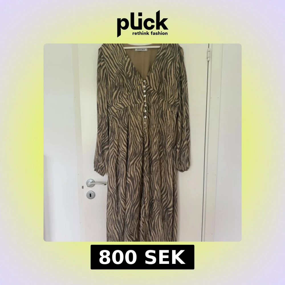 Snygg långklänning från Adoore med zebramönster i beige och svart. Klänningen har v-ringning, långa ärmar och knappar framtill. Perfekt för dig som vill sticka ut med en cool och trendig look. Använd endast vid fåtal tillfällen.