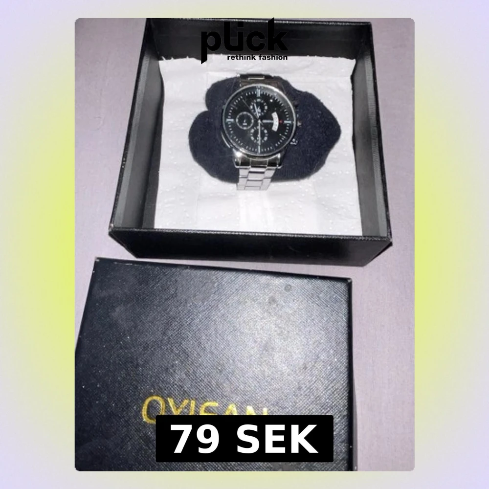 Stilren klocka från OYIFAN med svart urtavla och silverfärgat armband i metall. Urtavlan har flera små visare och datumvisning, vilket ger en modern och elegant look. Perfekt accessoar för dig som gillar klassisk design.
