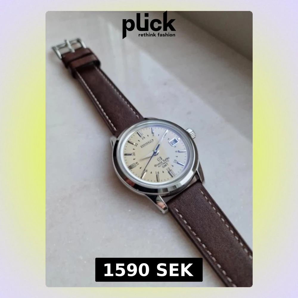 Stilren Seiko mod med 39.5mm diameters case, saffir glas, krämvit GS tavla och snyggt blå kontrasterande sekundvisare. Drivs av det automatiska verket seiko nh35