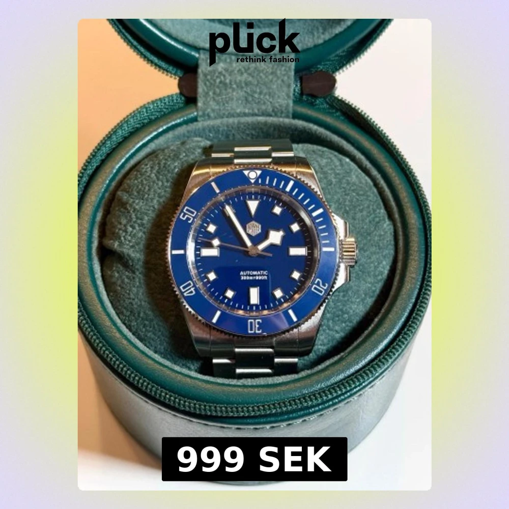 iktigt fin automatisk blå dykarklocka från Sam Martin, okej skick med lite repor på glaset och spännet. Köptes för ca 2500kr i slutet av 2024 och allt från köpet är kvar, certifieringsbricka, låda, extra länkar och tagen. Har även kvar garanti tills slutet av 2026. Modellnummer: SN0111-G-B Det är bara och skriva ifall du har några funderingar