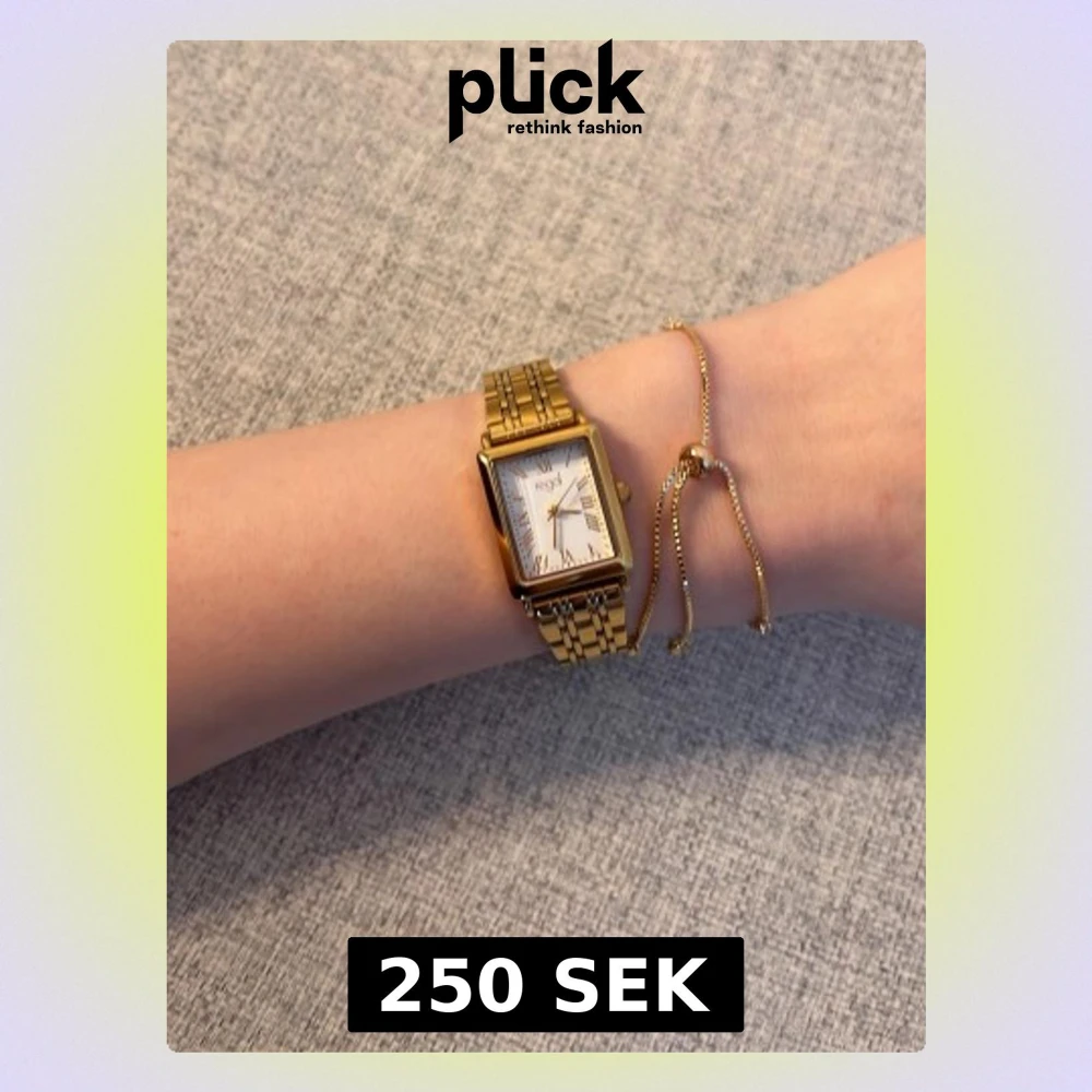 Säljer en elegant guldfärgad klocka från Regal med rektangulärt ur och vit urtavla. Klockan har en klassisk länkarmband i metall och stilrena detaljer. Perfekt för dig som vill ha en snygg accessoar som sticker ut. Den är helt ny och aldrig andvänd. Ord pris 500kr