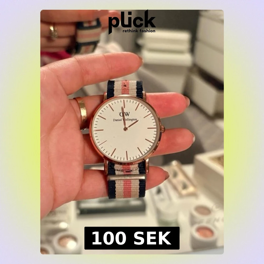 Snygg klocka från Daniel Wellington med vit urtavla och stilrena detaljer i roséguld. Armbandet är randigt i marinblått, vitt och rosa och gjort i textil. Perfekt accessoar för dig som gillar klassisk men ändå trendig stil. Behöver ny batteri