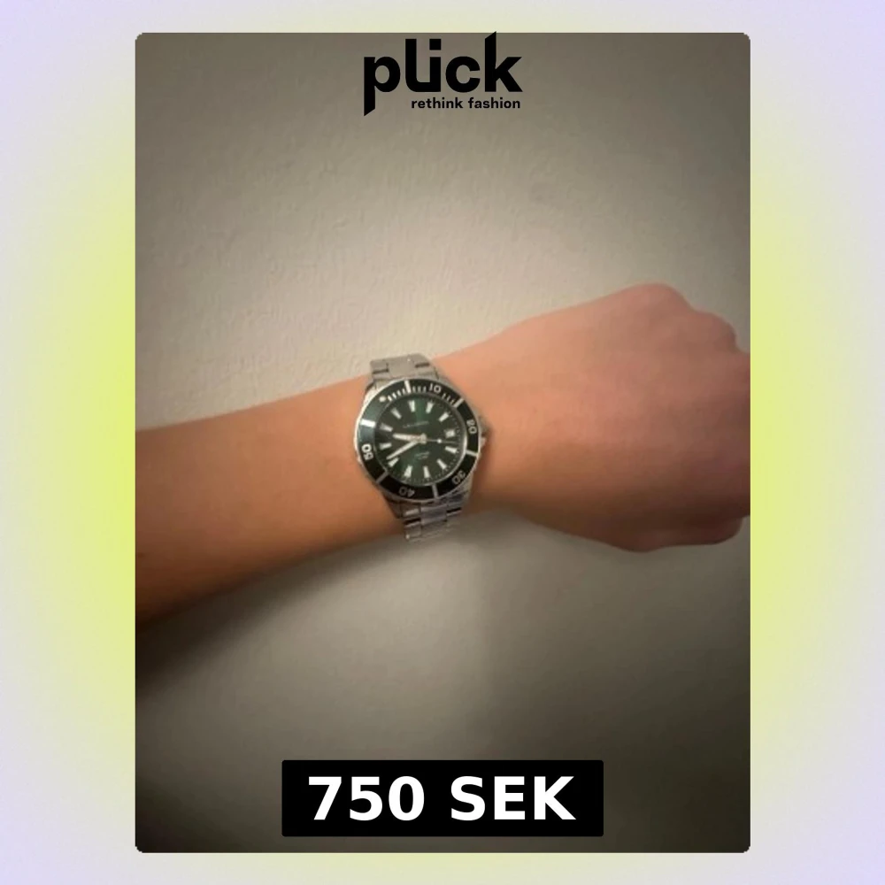 Stilren klocka från Leijona med grön urtavla och datumvisning. Klockan har en rund boett i silverfärgat stål och matchande länkarmband. Boett är 35,5 mm och klockan är vattentät till hundrameters djup. Nypris 1199kr.