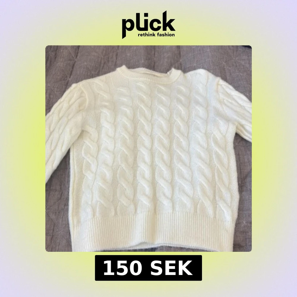 Vit stickad tröja med flätmönster - Säljer en mysig vit stickad tröja med flätmönster. Tröjan har en rund halsringning och ribbstickade muddar vid ärmslut och nederkant. Perfekt för kyliga dagar!