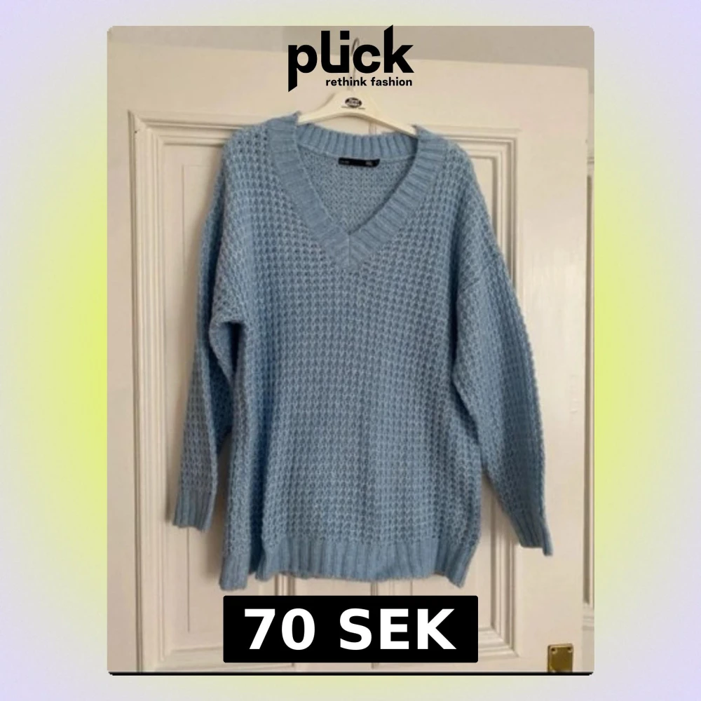 Mysig ljusblå stickad tröja från 157 med v-ringad hals och grovstickat mönster. Tröjan har lång ärm och ribbade muddar vid ärmslut och nederkant. Perfekt för lager på lager under kyliga dagar.